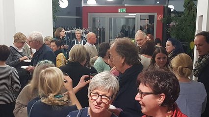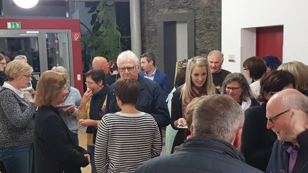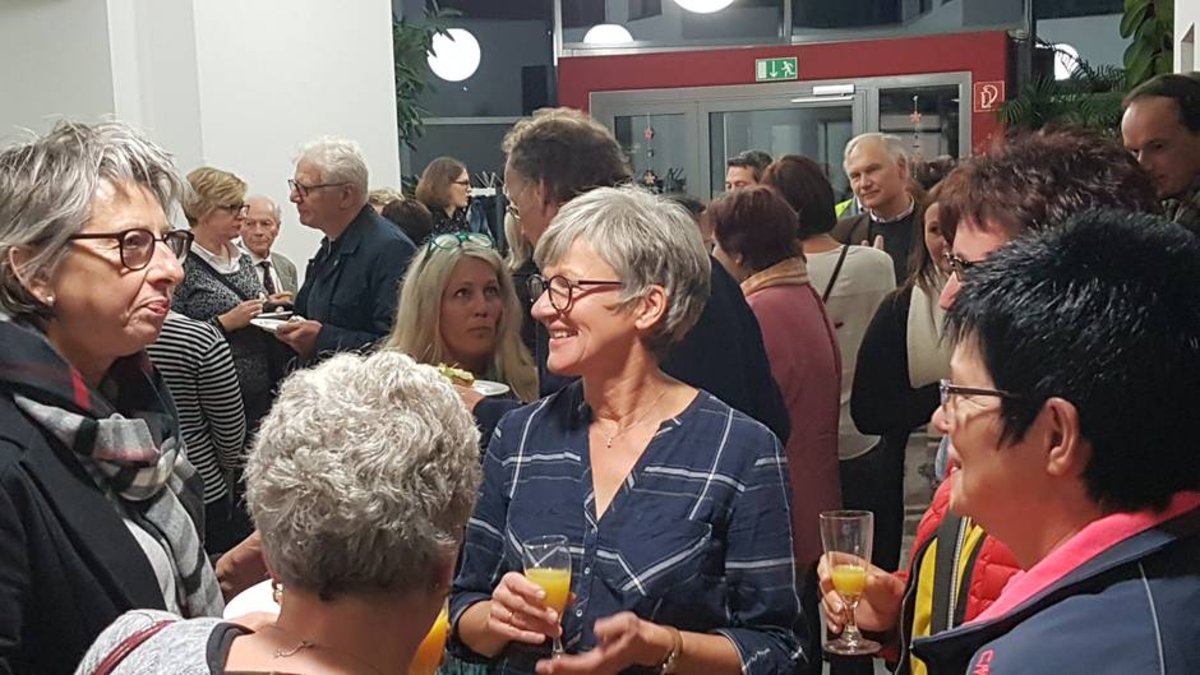 Am Ende der Veranstaltung nutzen die Besucher der Veranstaltung die Möglichkeit, sich in Gesprächen zu vernetzen und auszutauschen. Foto: Auf Einladung der Steuerungsgruppe trafen sich die Mitglieder des Palliativnetzwerkes Neuwied im Gemeindesaal der ev. Kirchengemeinde Feldkirchen um das 10-jährige Jubiläum des Palliativnetzwerkes zu feiern.